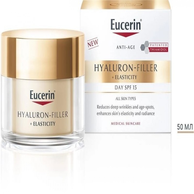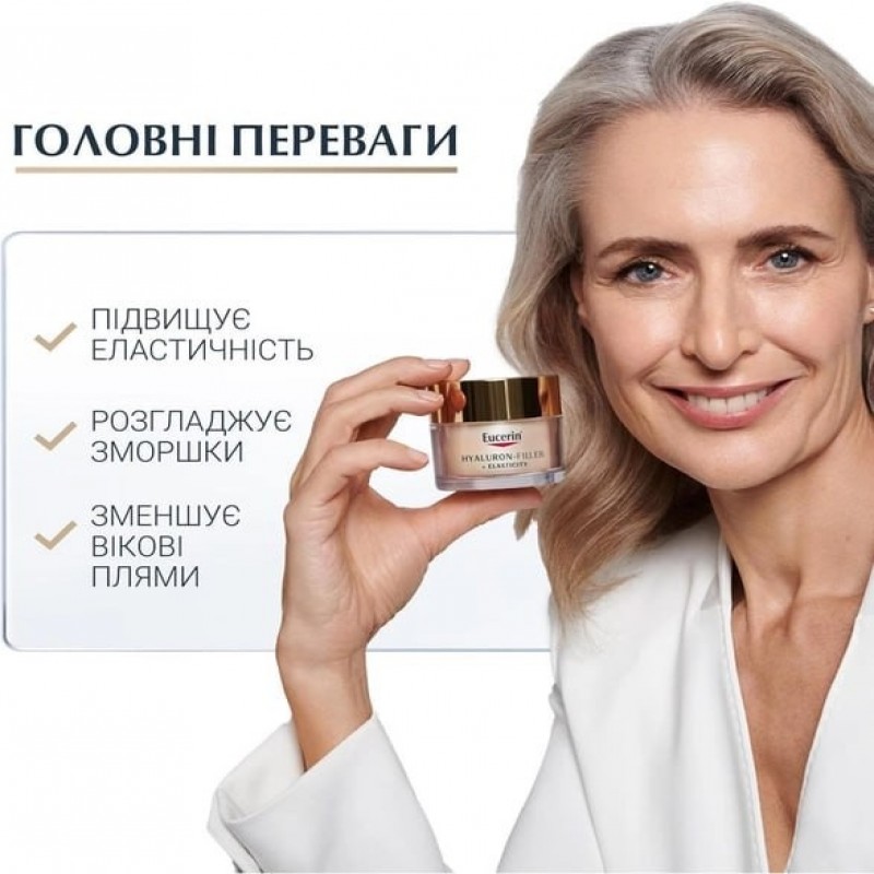 Антивіковий денний крем для обличчя Eucerin Hyaluron-Filler + Elasticity SPF-15 50 мл (4005800160233 999.0 ₴ |